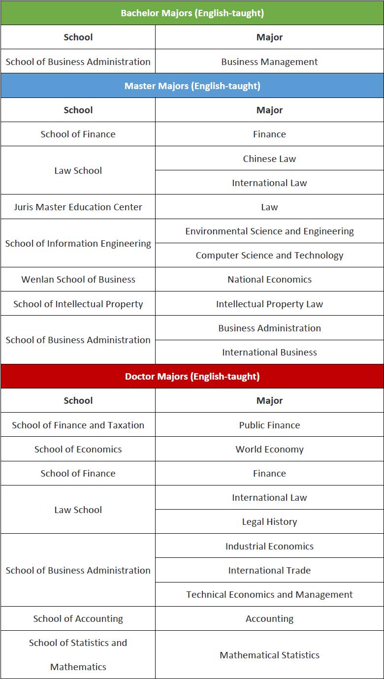 2025 Zhongnan University of Economics&Law English-taught