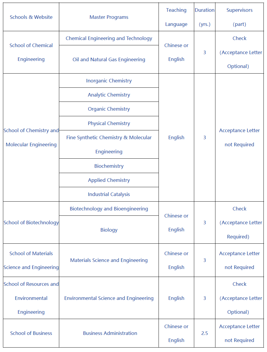 1. Applicants must hold valid foreign passports and in good health, with valid degrees (Bachelor’s degree or above for master programs, Master’s degree or above for Ph.D. programs).